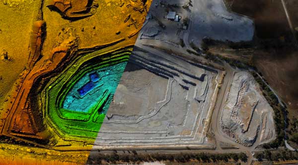Digital Terrain Models are captured from aerial imagery to accurately reflect the elevation of the survey area and forms the basis of any mine design and planning.